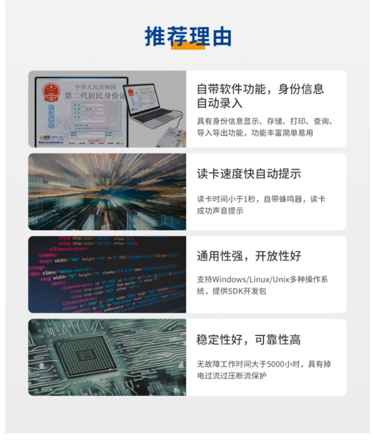 • 專注身份證閱讀器、指紋采集儀、社保卡讀卡器、IC卡讀寫(xiě)器的一家身份證應(yīng)用服務(wù)平臺(tái)